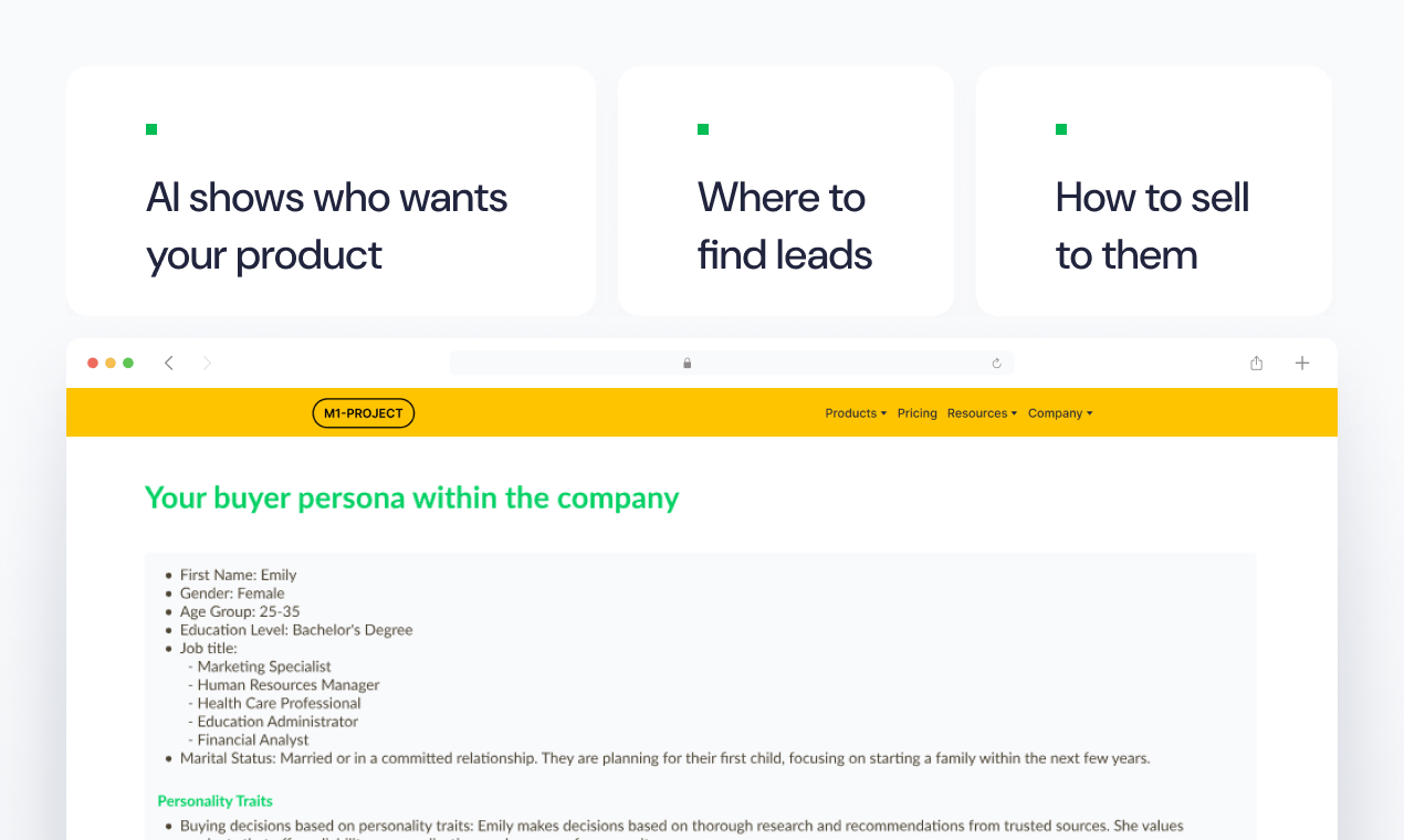 Just feed it your product description, and it'll tell you everything about your best audience (Goals, Problems, Pains and more).